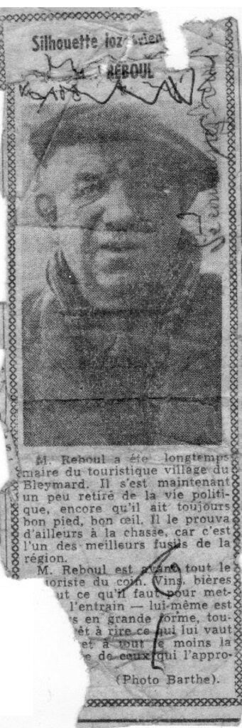 M. Reboul a été longtemps maire du touristique village du Bleymard. Il s’est maintenant un peu retiré de la vie politique, encore qu’il ait toujours bon pied, bon œil. Il le prouva d’ailleurs à la chasse, car c’est l’un des meilleurs fusils de la région.