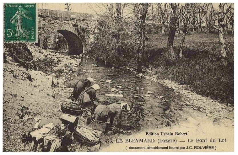 L’eau étant alors un luxe, le rinçage des lessives se faisait soit au lavoir, sous-mamé-Jeanne (photo n° 1) soit dans un petit gourg situé sous le pont entre le Bleymard et la Remise (photo n° 2).