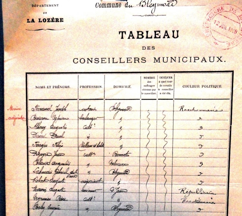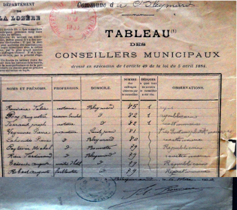 | Pons Augustin | Receveur buraliste | Bleymard | 82 | républicain |