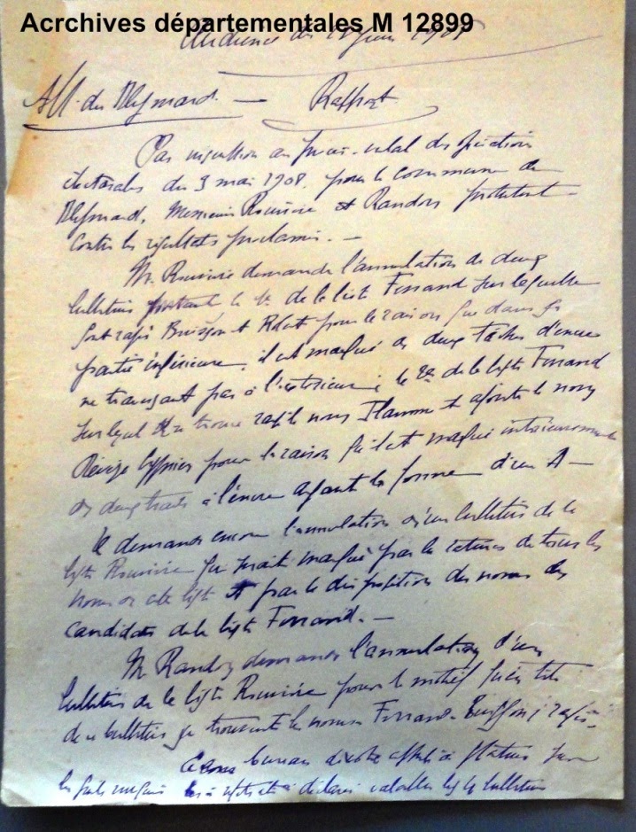 Les recours de MM. Rouvière et Randon sur la régularité du scrutin de 1908 étaient motivés notamment par le soupçon de « marquage » de deux bulletins.