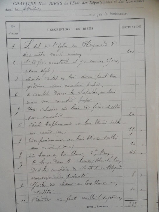 Comme en fait foi la commission que vous nous avez présentée, vous êtes donc chargé de procéder à l’inventaire des biens mobiliers et immobiliers dont la fabrique du Bleymard a la propriété ou la jouissance.