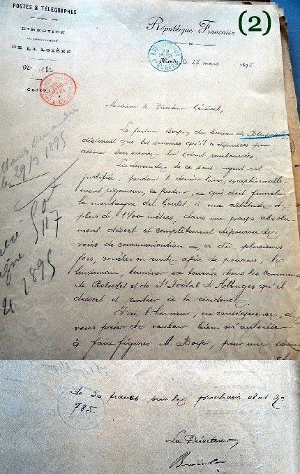 Les archives départementales possèdent peu de documents relatant l’histoire de la Poste au Bleymard. Ce que je livre est donc assez succinct et incomplet.