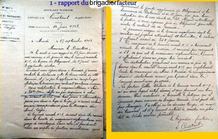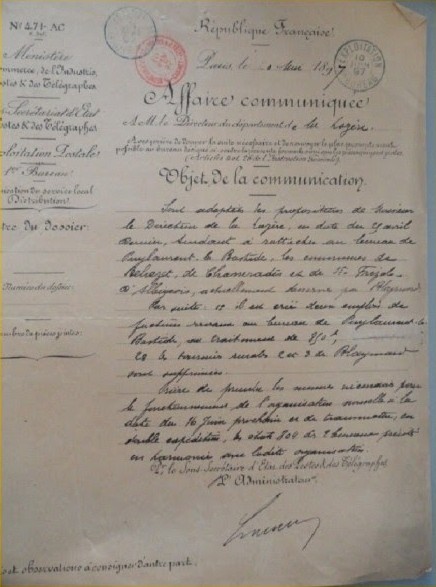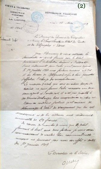 Les archives départementales ne sont pas riches en documents sur cette partie du service des P.T.T.