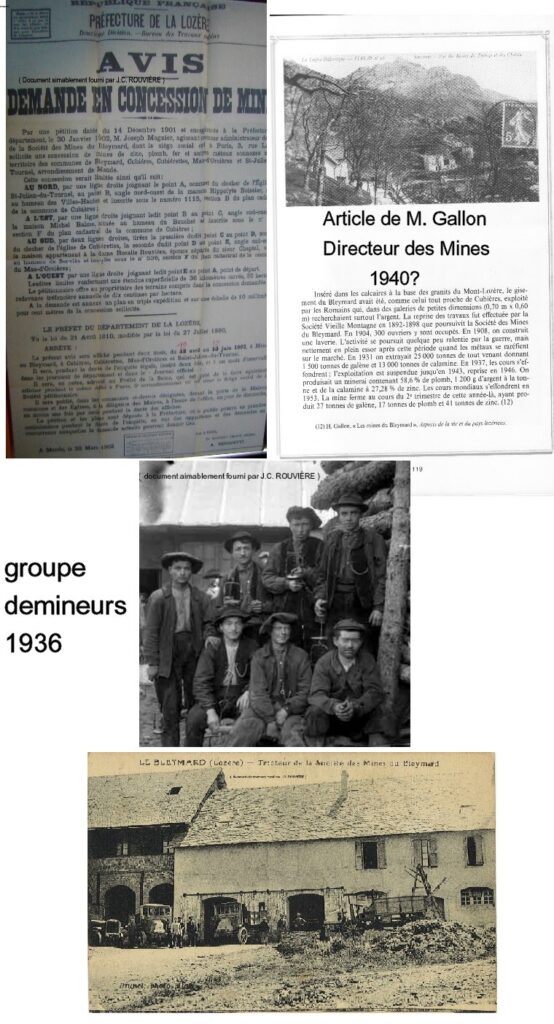 De nombreux habitants du Bleymard et des environs travaillaient aux mines et souvent menaient de front une autre activité notamment l’exploitation d’une petite propriété. Ces doubles journées devaient être épuisantes, d’autant que l’accumulation des poussières de plomb dans l’organisme provoquait parfois l’apparition des redoutables « coliques de plomb » (saturnisme).