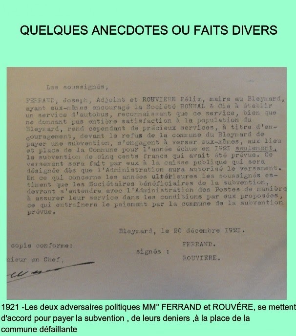 Faisant pendant à l’histoire intitulée Comment on s’amusait au Bleymard au XVIe siècle, M. Bardy, dans un récit paru dans trois numéros successifs du Païs en 1956, dévoile les écrits d’un obscur receveur de l’enregistrement qui occupa ses fonctions au Bleymard, pendant 14 mois en 1877 et 1878.